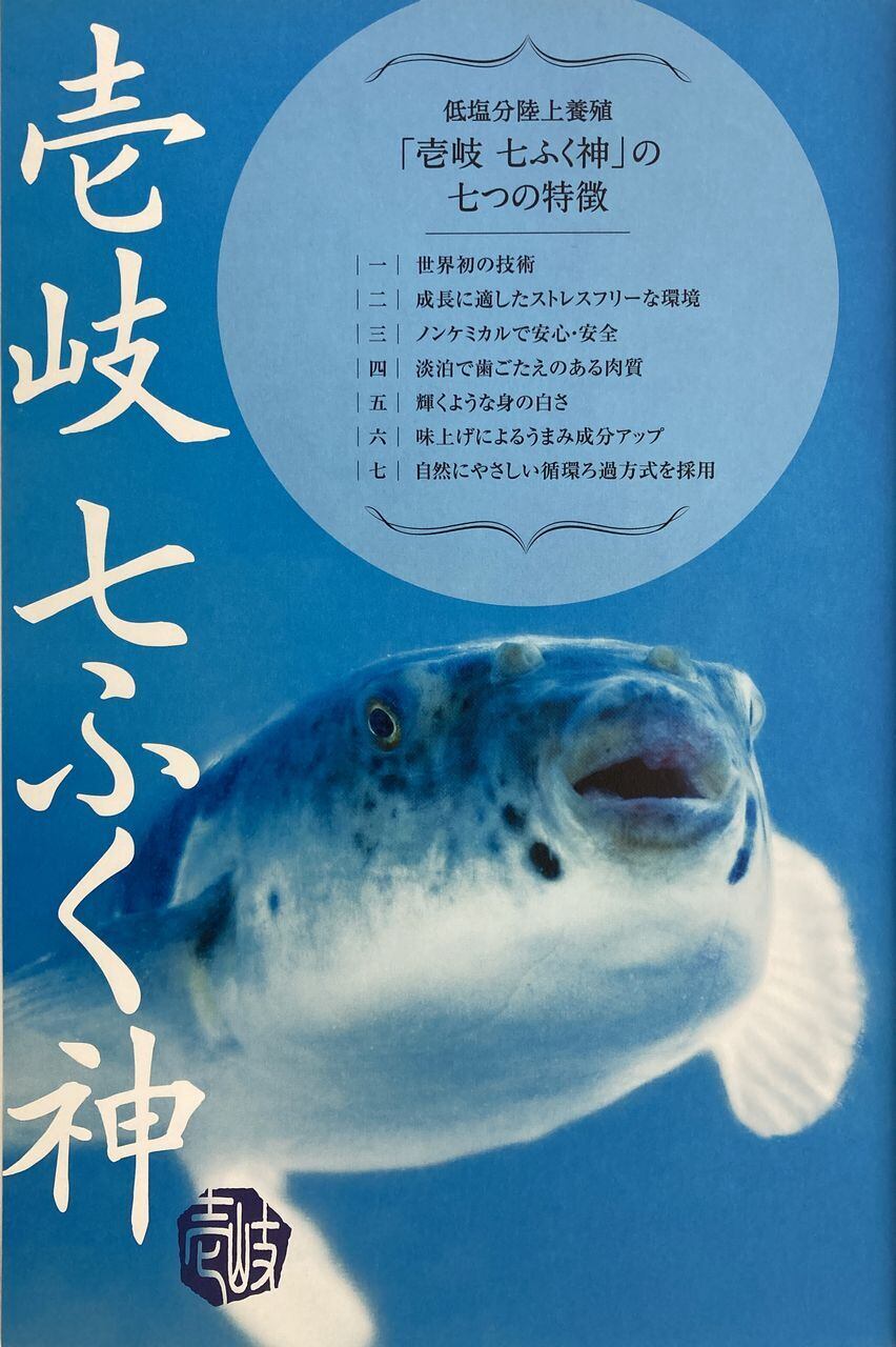 長崎県壱岐の美しい海と、世界初の低塩分地下海水で育てたブランド養殖トラフグ「壱岐七ふく神」。丁寧に育てられたトラフグは、上品な甘みと旨味が凝縮された極上の味わいが特徴です。