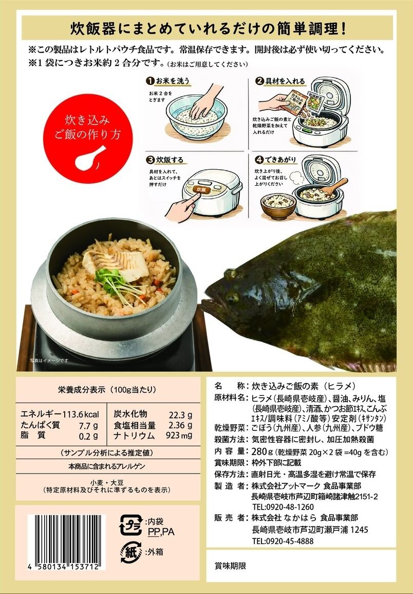 原材料名:ヒラメ(長崎県壱岐産)、醤油、みりん、塩(長崎県壱岐産)、清酒、かつお節エキス、こんぶエキス/調味料(アミノ酸等)、安定剤(キサンタン)